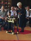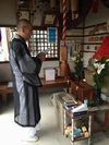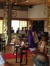 施餓鬼棚に向かってお勤めいたします。 法要後、住職の法話